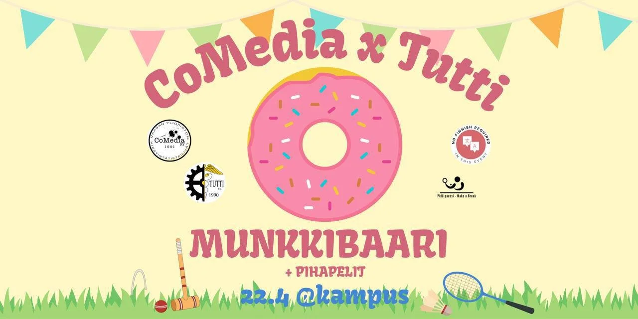 Tule siis CoMedia x Tutti munkkibaariin 22.4., jos kaipaat pientä purtavaa ja hauskaa tekemistä. Luvassa on monipuolinen kattaus erilaisia pelejä, joten jokaiselle löytyy varmasti oma suosikki! Olit sitten mölkyn mestari, kroketin kuningas tai kova suliksen harrastaja!